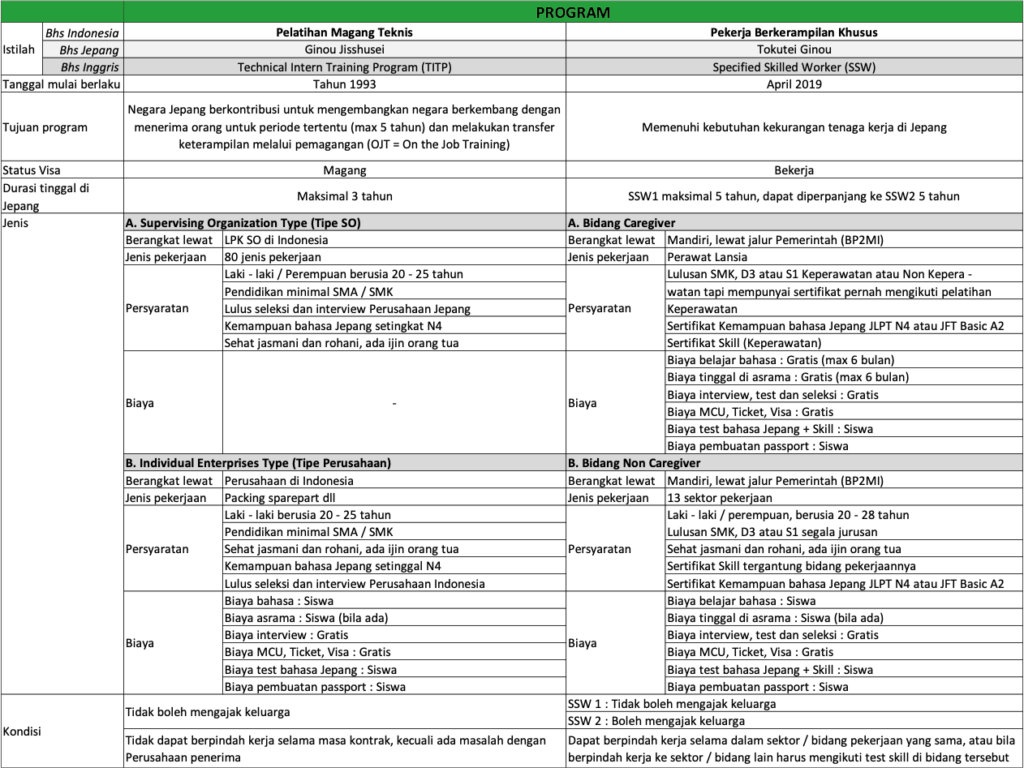 Program Magang Enterprise adalah program pengiriman karyawan Perusahaan di Indonesia ke Perusahaan afiliasinya di Jepang, untuk tujuan pemagangan. Disamping itu kami juga menyediakan pelatihan dan pendidikan persiapan untuk bekerja di luar negara Jepang.